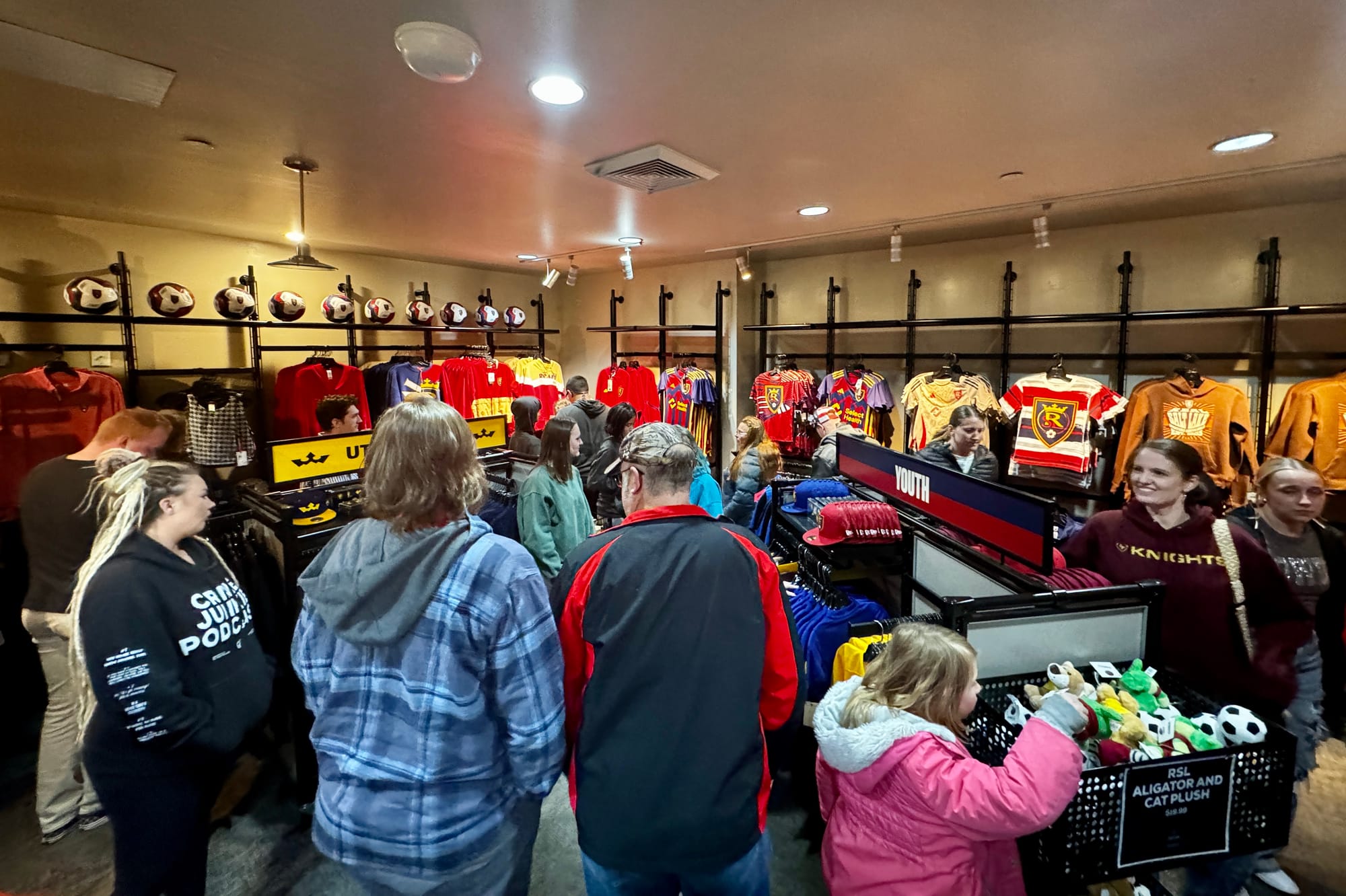 America First Field shares their space with the MLS men’s soccer team, Real Salt Lake, and their large brick-and-mortar team store was split about 50/50 with MLS team merch and Utah Royals jerseys, T-shirts, hats, and sweatshirts. When we visited the team store it was pretty packed, and even though the shop had just about everything any fan could ever want, we were slightly surprised to only see ball caps for sale in the hats department, no fuzzy knit caps of any kind.