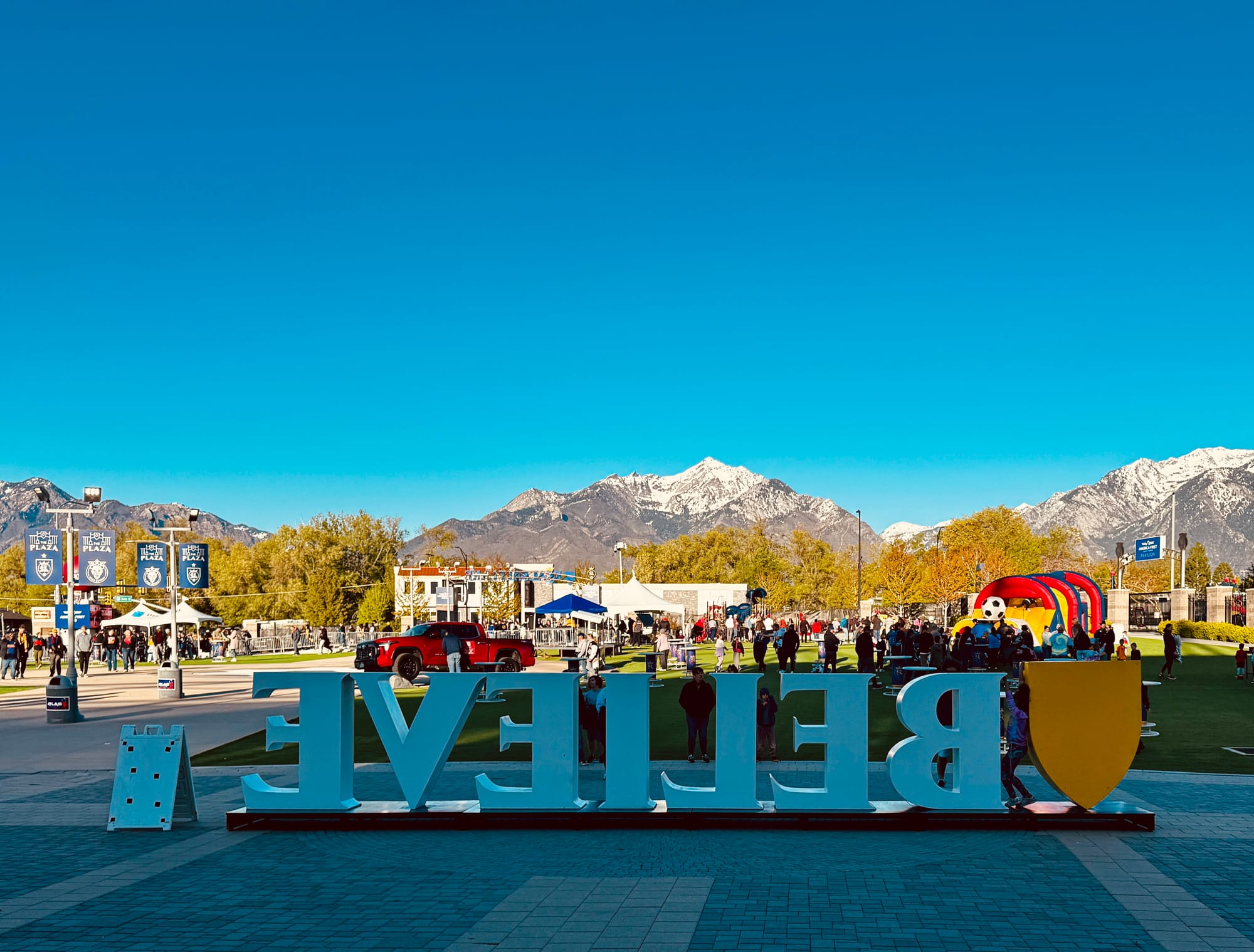 There was a large 2-acre sized fan zone just off the east side of the stadium, with plenty of things to do for kids like play games, get their face painted, or just run around on the ample grounds. There were various sponsor tents and I bet on bigger game nights they could accommodate dozens of food trucks. Honestly, it felt like a central quad at a college campus and it was a nice place to catch a view of the nearby mountains while stretching our legs.