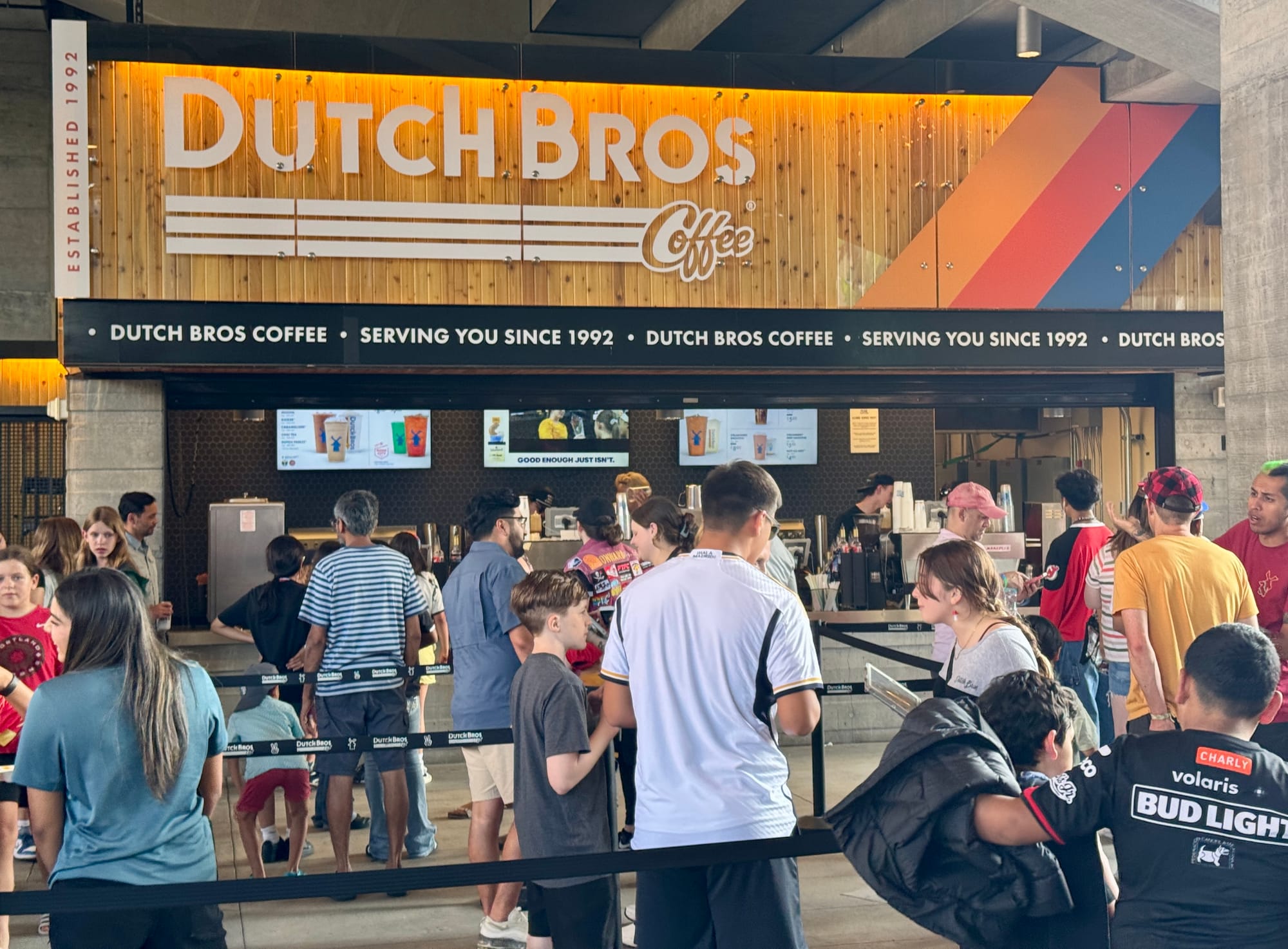 Lines move fairly fast, and before matches start it usually takes only a few minutes to get some food and drinks. Halftime is often quite busy and will take longer to get refreshments.